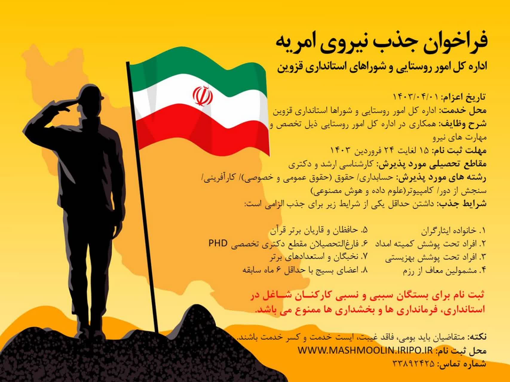 فراخوان جذب امریه برای خدمت مقدس سربازی در مجموعه استانداری