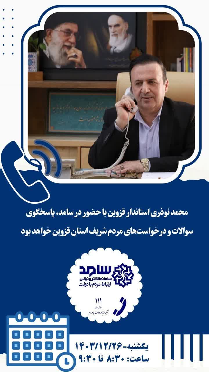 گفتگوی تلفنی استاندار قزوین با مردم شریف استان
