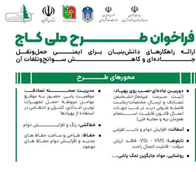 فراخوان طرح کاج ( کاهش آسیب های جاده ای) تا پنجم مرداد ماه تمدید شد