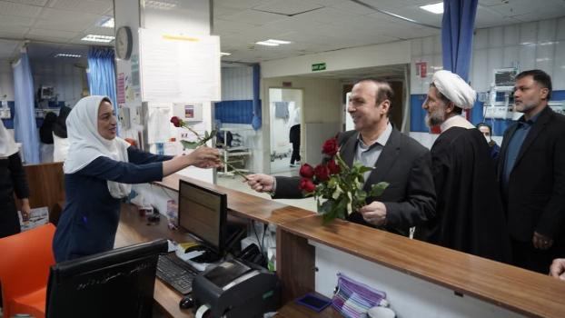 در این بازدید صمیمی، استاندار قزوین و نماینده ولیفقیه در استان به همراه جمعی از مسئولان و مدیران استانی ،با حضور در بخشهای مختلف بیمارستان، ضمن گفتوگو با پرستاران و بیماران، به جمعی از پرستاران گل و لوح سپاس تقدیم کردند.