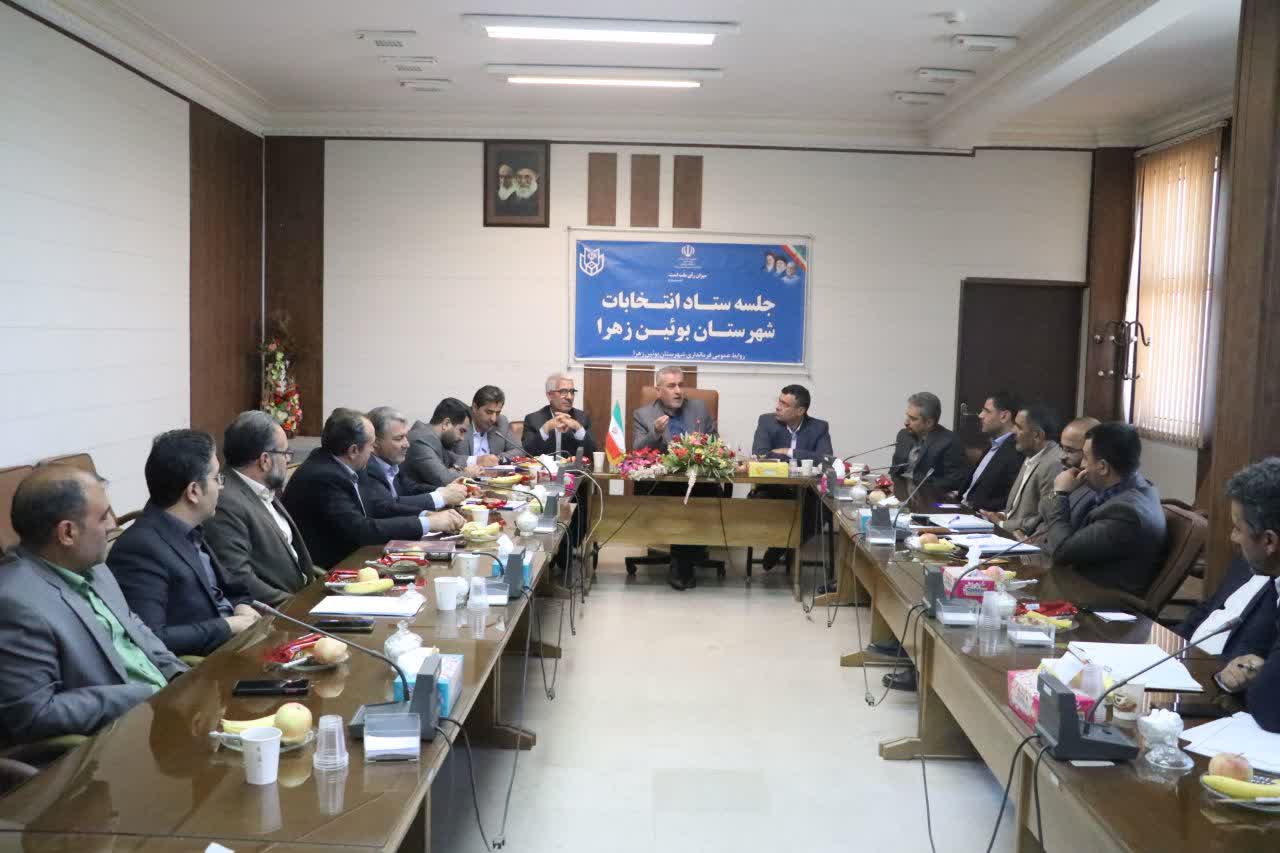 جلسه ستاد انتخابات شهرستان بوئین زهرا به شهرام احمدپور معاون سیاسی امنیتی و اجتماعی استاندار قزوین و رئیس ستاد انتخابات استان قزوین برگزار شد.