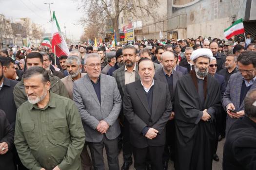 حضور محمد نوذری استاندار قزوین، آیت الله مظفری نماینده ولی فقیه در استان و امام جمعه شهر قزوین ،ولایتمدار آبنوش نماینده مردم شریف قزوین،آبیک و البرز در مجلس شورای اسلامی ،احمدپور معاون سیاسی استاندار ،طاهرخانی فرماندار قزوین ، مدیران ستادی استانداری ،فرماندهان نظامی و انتظامی استان و جمعی از مدیران و مسئولان استانی در کنار خیل عظیم مردم، تجدید میثاقی دوباره با آرمانهای والای امام راحل(ره)، شهدای گرانقدر و مقام معظم رهبری (مد ظله العالی)بود؛ پیامی روشن به جهان که ایران اسلامی با اتحاد و انسجام ملی، مسیر پیشرفت و عزت را با قدرت ادامه میدهد